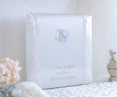 ながれるような2本のリーフ柄のレースがアルバムを豪華で大人っぽい表情にしています。